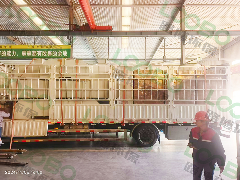 焊接車間煙塵治理工程設(shè)備裝車發(fā)貨。